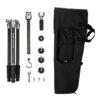 The newly designed 25mm diamond-pattern carbon fiber tubes and precision milled aluminum body provides a lightweight system with maximum strength and durability. It weighs in as low as 2.8 lbs. (1295 g) while supporting 17.6 lbs. (8 kg). The CF-704 is a 4-section tripod with a folded height of 18.7 inches and a max height of 64.6 inches.